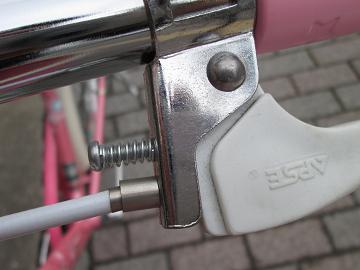 自転車のサイズ、大人用と子供用では同じサイズ表示でも全く違います。同じ24サイズでも全体の大きさが違うし、各パーツも当然違ってきます。しかし、廉価車の場合はコストダウンを図るため、兼用している物が多いのが実情です。これはある程度仕方がないことだと…。ですが「走る・止まる」という基本部分では操作性の問題で差別化する必要があると考えます。例えばブレーキレバー!ブレーキングする時に握るのですが、手の大きさにあっていないと本来の制動力が得られません。それを調整することが出来るタイプが必要になるわけですね!そしてその調整がキチンとされているかどうかが問題です。